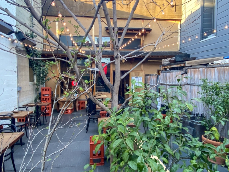 場所は14丁目沿いのフォルサム通り近くにあり、一見レストランとはわからない外観もワクワクポイント。敷地内に入ると店頭に居心地の良いパティオ席が広がり、その奥の家屋がレストランとなっています。