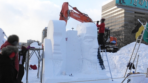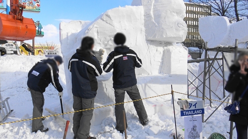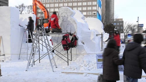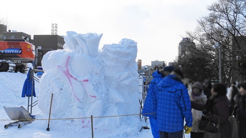• 写真:トラベルライター制作中の「進撃の巨人、サッポロ襲来!」雪像(横)