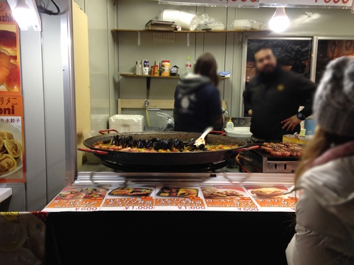 北海道、スペイン、ロシア、九州、トルコ・インドの屋台が並んでおり、パエリアやボルシチ、ケバブなど、各国の有名な料理が食べられます。作っているのは各国の人なので、本場の味を楽しめます。