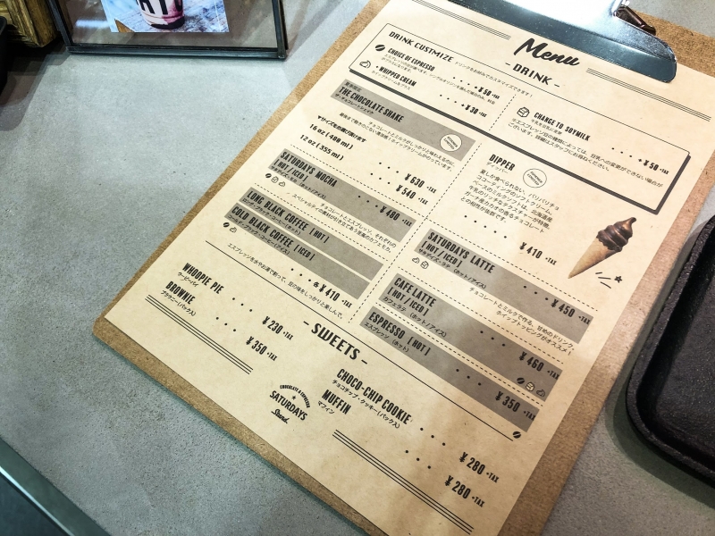 暑い夏にぴったりのドリンクもあるんですよ!この可愛らしい「SATURDAYS」と書かれたカップ、サイズは12oz(355cc)と16oz(480cc)の2種類。