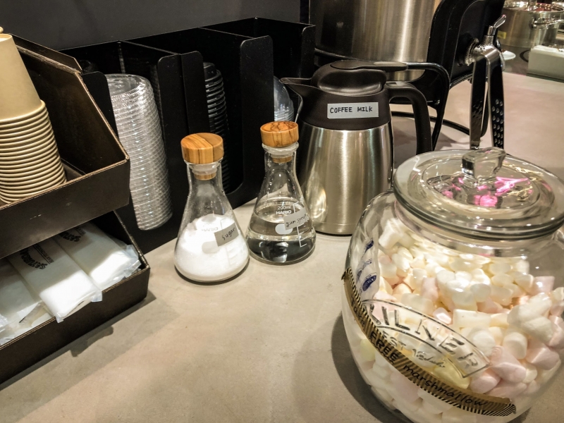 • 写真:トラベルライターシュガーやミルクの他に、「マシュマロ」もセルフで入れることができるんです
