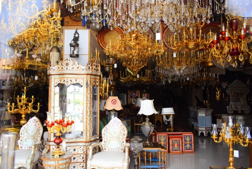 ダンマームやサウジアラビアに限ったことではありませんが、イスラム教の国はシャンデリアの店が多いです。日本家屋にはなかなか合わず、あまり目にすることもありませんので、珍しくてついつい見入ってしまいます。キラキラとして美しいですね。どの家庭も、部屋着だけでなく、お部屋の装飾も豪華なのでしょうか。