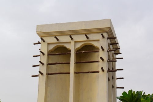 この手のちょっとした広さの公園は、ダンマームに限らず多く、必ず王族の名前がついているのが特徴です。建物の上にあるギザギザとした白いものは、サウジアラビア独特のデザインのようです。また、丸太が突き出ているようにみえるのは、デザインではなく補強です。