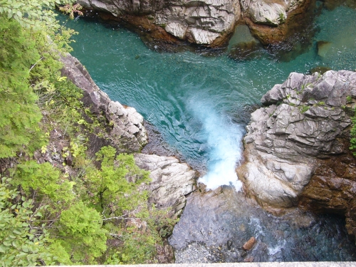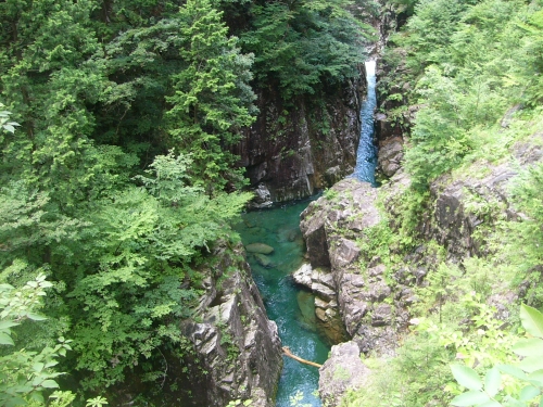 板取キャンプ場の先にあり、車で進める最奥地にある渓谷です。切り立った岩壁の間を直角に折れ曲がるように流れる川はまさに渓谷といえる絶景です。自然豊かな山の中にあり、春の新緑や秋の紅葉も楽しめるスポットです。