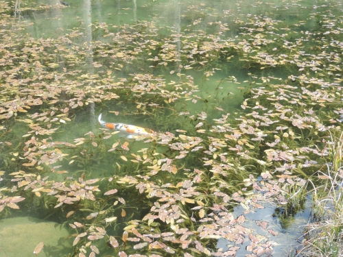 透き通った水と睡蓮の葉、優雅に泳ぐ錦鯉がとても美しい池です。周辺には駐車場も整備されていますが、週末などは車の渋滞も発生する人気スポットです。