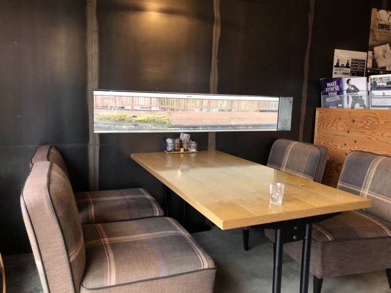 フラットホワイトコーヒーファクトリーは、シックな建物が印象的なお店です。入り口には大きな看板が立っているので、見つけやすいと思います。