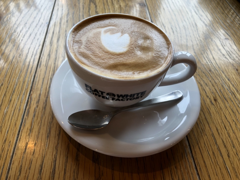 お店の名前にもなっているフラットホワイトも、ぜひ味わってみてください。こちらは「フラットホワイト'98」というコーヒーです(450円)。