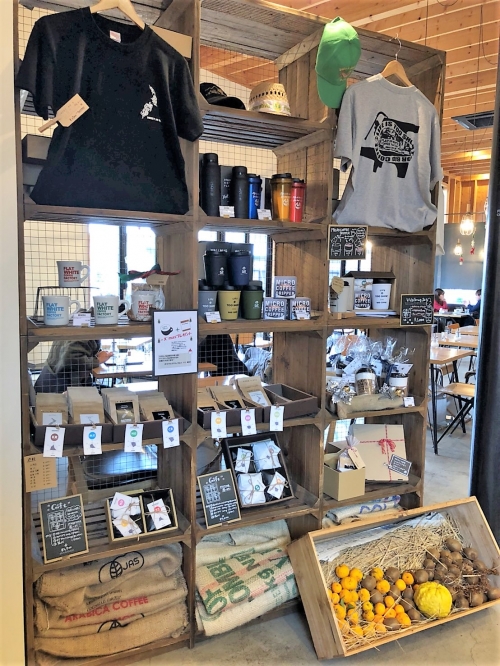 お店の中では、Tシャツやタンブラーなどさまざまなオリジナルグッズが売られています。どれもお洒落でかわいいものばかり!もちろん本格的なコーヒー器具なども売っています。こちらも、気になる方は是非!