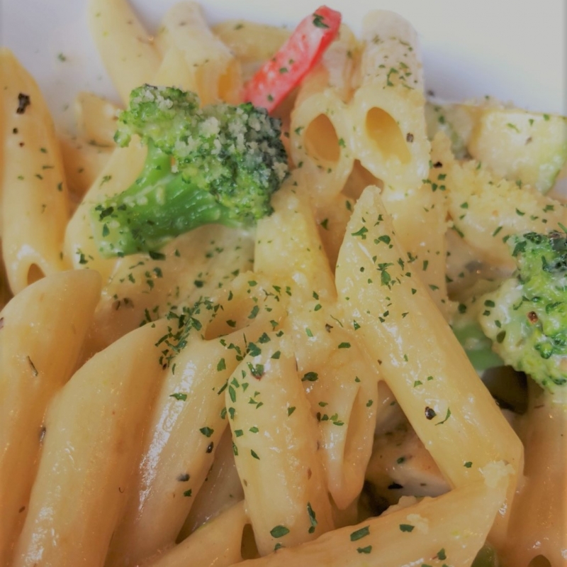 こちらはチキンアボカドパスタ(980円)です。女性に人気のアボカドが入っています。パスタの硬さが丁度よく、クリーミーでおいしいですよ。