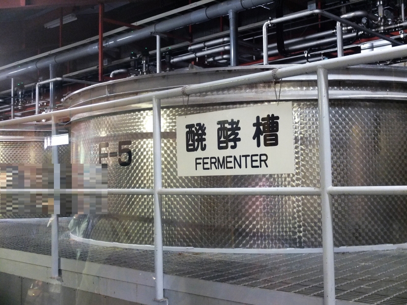 仕込棟では、工程3と4の糖化・醗酵が行われています。この作業は最新のコンピュータによって24時間体制で管理されており、管理室の写真撮影も禁止です。