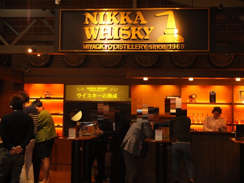コース見学が終了すると、ウイスキーの貯蔵庫を改装したホールで、お待ちかねの試飲タイムです。この日は、竹鶴、スーパーニッカ、アップルワインの3種類(銘柄は変更あり)の無料試飲ができました。お子様やドライバーさん用には、烏龍茶・ジュースも無料です。