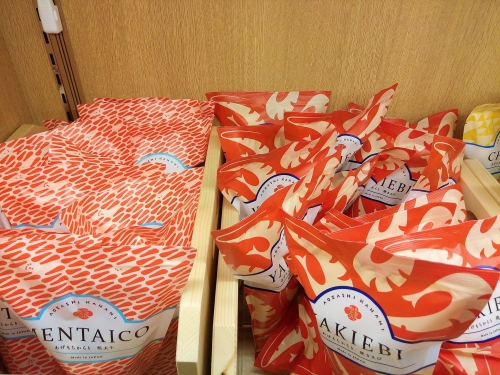 「あげもちからり」はサックリ揚がったあげもちの美味しさはもちろん、パッケージのデザインにもこだわっています。フレーバーの「エビ」や「チーズ」を大胆にデザインしたカラフルなパッケージは、ホームパーティーにもぴったり。一袋500円以下というプチプライスも、気軽に買えるオシャレな仙台土産として人気です。