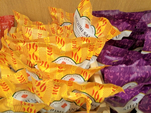 個包装4個入り(650円/税込)は、不織布でちょこんと風呂敷包みにしたルックスが可愛らしく、「ず」と一文字あしらったデザインもインパクト大。