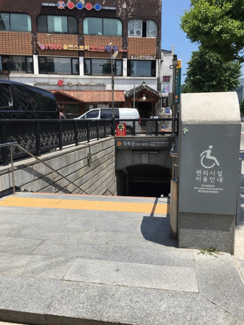 景福宮駅4番出口を目指し、階段を登ると地上へ出ます。地上へ出た後は、そのまま真っすぐ進み、最初の道を右に曲がります。