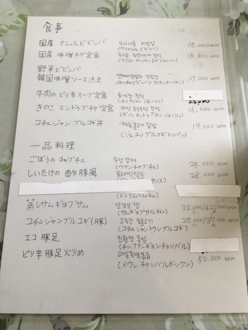 今回ご紹介する野菜ビビンバは、「野菜ビビンバ韓国味噌ソース添え」というメニュー。金額は、17,000ウォン(日本円で約1,700円)です。