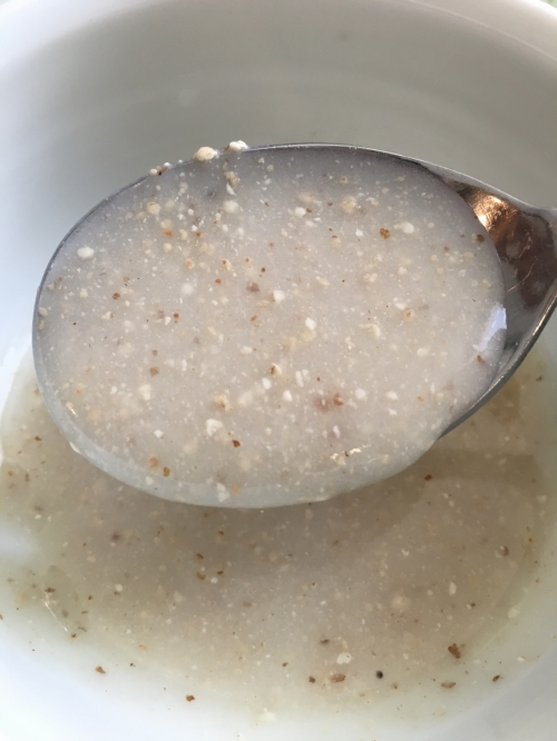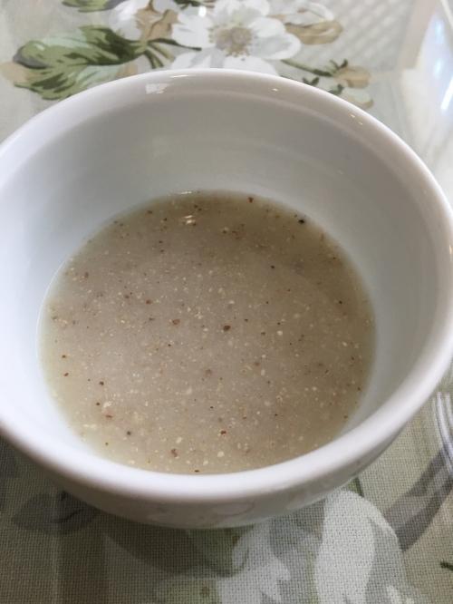 穀物お粥は優しい香りで、とろっとした食感です。柔らかいのですぐ飲みこめますが、香りが豊かなので、いつまでも口に含んでいたくなるような味です。