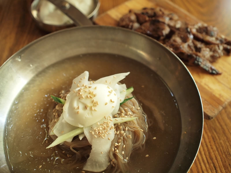 冷麺のチェーン店があるというから、さすが韓国ですね。韓国では、美味しいからチェーン店ができるのだ、という発想。ソウルの街のあちらこちらで見かける冷麺のチェーン店ユッサムネンミョンは、間違いなく美味しい!しかも安い!