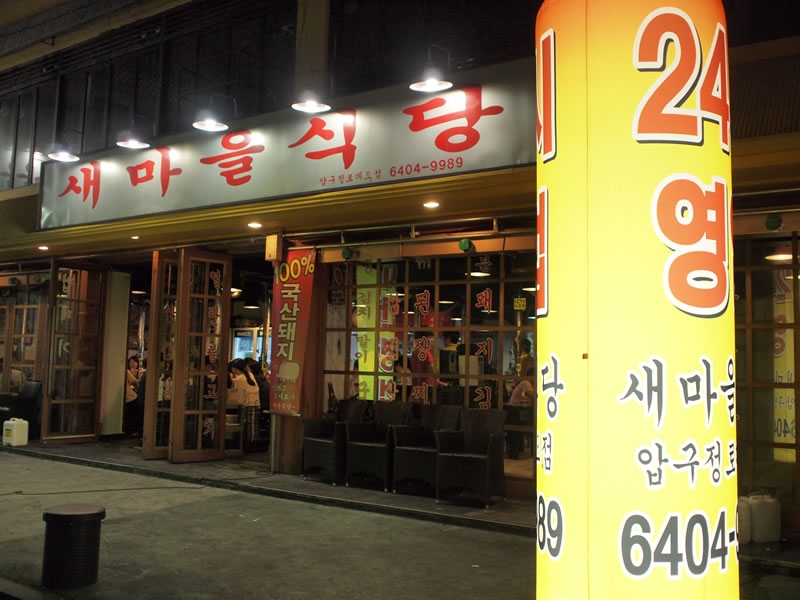 『セマウルシクタン』は主な観光エリアにはたいていあります。明洞(ミョンドン)には2店舗、狎鴎亭(アックジョン)にも2店舗。そのほか、お洒落なカロスキルや、24時間眠らない街・東大門(トンデムン)、学生の街・弘大(ホンデ)などにも店舗があります。ちなみに狎鴎亭駅店は24時間営業。クラブなどで夜遊びしてお腹が空いたら、フラリと立ち寄ることができます。