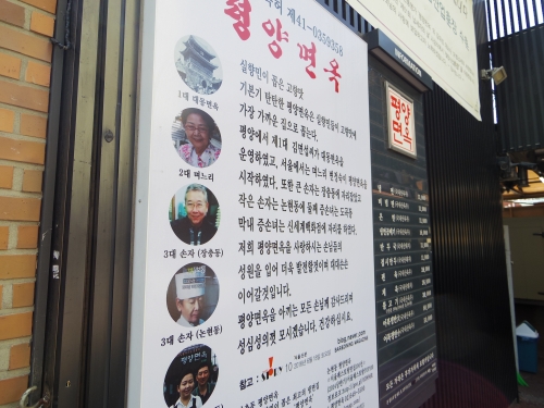 看板に三代目とあるとおり、北朝鮮・平壌にあったお店を受け継いで、現在の店主が三代目ということ。『ミシュランガイド・ソウル2017』にも掲載された名店です。