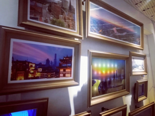 展望台への入り口は地下1Fにあります。まずはセキュリティチェックを受けましょう。セキュリティチェックの横の壁には、きれいな景色の写真が飾ってあります。