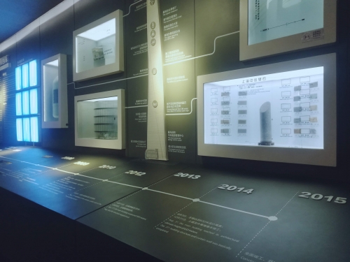 ランキングの近くには「上海タワー建設の歴史」というストーリーも描かれており、当初は、9案のデザインがあったそうです。どれもシュッとしており、スラリと格好良いですね。