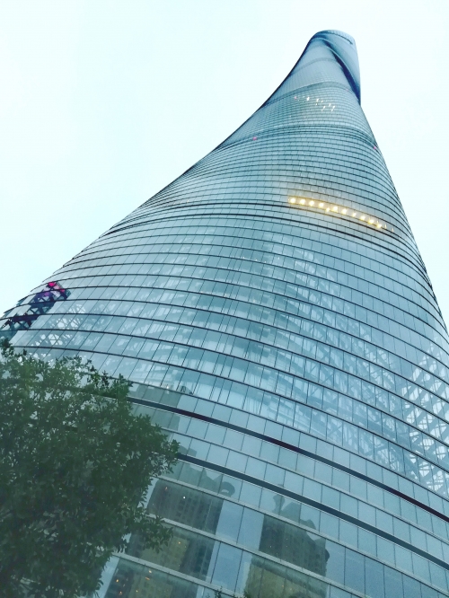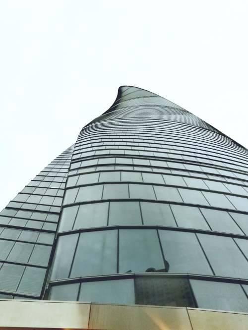 まずは、タワーの外観を見てみましょう。真下から見る上海タワーは、もう形が良くわからないことになっています。それだけ、とんでもない高さを誇るタワーということです。