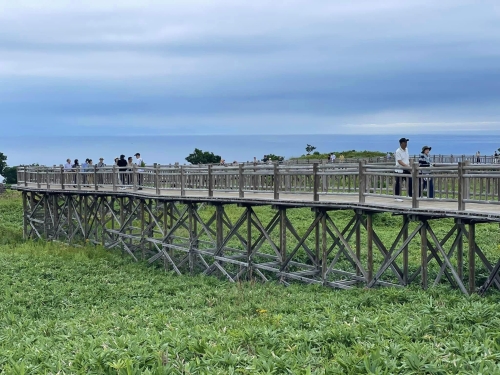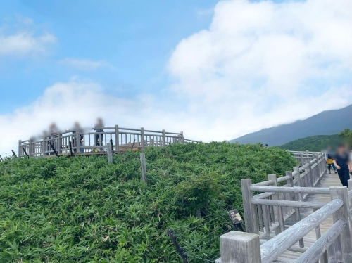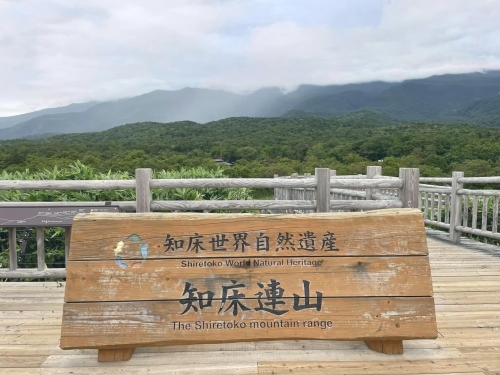 高架木道には3つの展望台があり、入口から約250mに「連山展望台」、入口から約500mに「オコツク展望台」とあり、知床連山や海の景色を楽しむことができます。