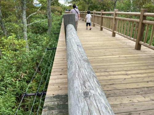 ヒグマが登らないように高さが2m以上もある木道には、更に電気柵も備えてあり、安心して歩けます!