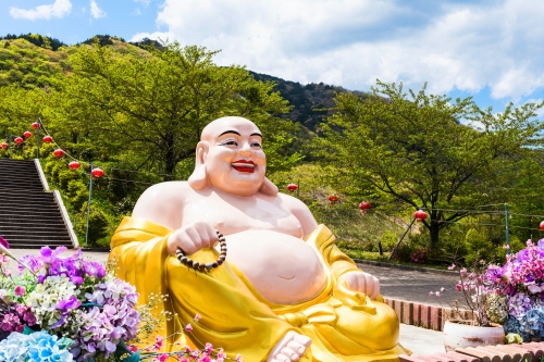 法水寺は、正式名称を「佛光山法水寺(ぶっこうざんほうすいじ)」といい、台湾の高尾で1967年に開山された臨済宗のお寺です。日本国内には東京、山梨、大阪に寺院や道場があり、2018年に誕生した伊香保にある法水寺は、国内の総本山となっています。日本ではあまり見かけないパンチのあるカラーと存在感を醸し出す仏像や、まるで天まで続くかのような長い階段など見どころが満載です。