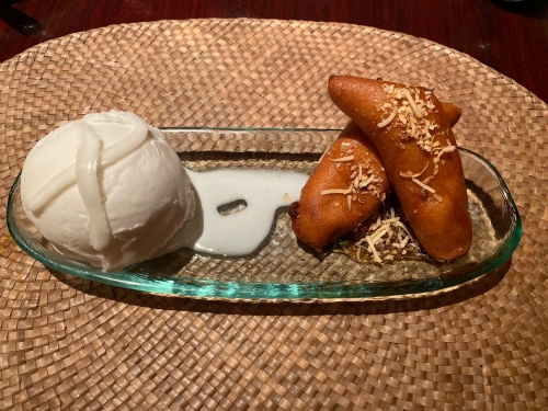 バナナやサグー(タピオカ)、ココナッツなどを使ったデザートがあります。サグー&ココナッツミルク(¥600)は、提供までに時間がかかるので早めにオーダーしましょう。熱々揚げたてのバナナにアイスクリームがのったピサン・ゴレン・アイスクリーム(¥870)は、火傷に気をつけて頂きましょう。