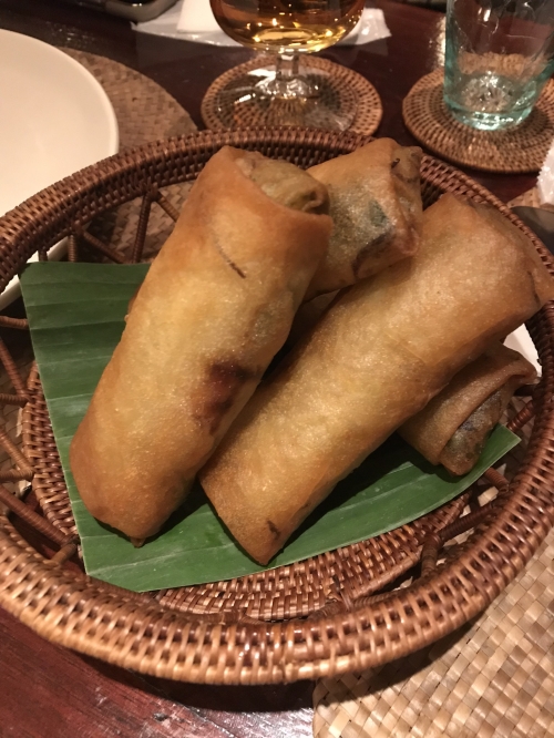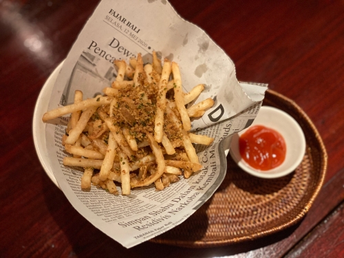 海老と野菜の春巻き、ルンピア(¥1,080)や、豆腐の甘辛揚げのタフ・ゴレン(¥1,020)は、誰からも愛される味。ビールのおつまみには、えびせん(1枚¥100)や、スパイスがかかったポテトフライがおすすめ。
