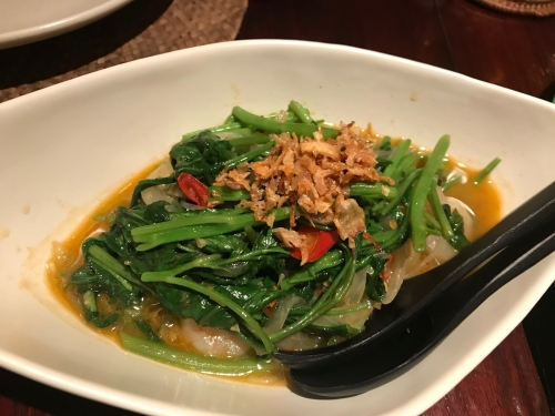 ご飯の付け合せには、空芯菜の炒め物(¥1,020)や青菜の炒め物(¥930)がおすすめ。また口直しには、さっぱりとしたインドネシア風ピクルス(¥540)が良いでしょう。