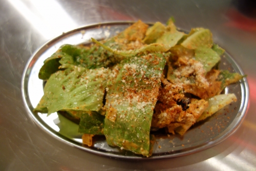 メキシカンシーザーサラダ(¥580)は、シャキシャキのレタスをメキシカン風のドレッシングで和えています。レタスのシャキシャキ感とピリ辛ドレッシングが後をひく美味しさ。
