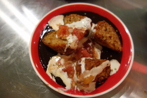 ライスコロッケのカカオソース(¥550)は、ライスコロッケに特製の甘く後を引くカカオソースがかかっています。