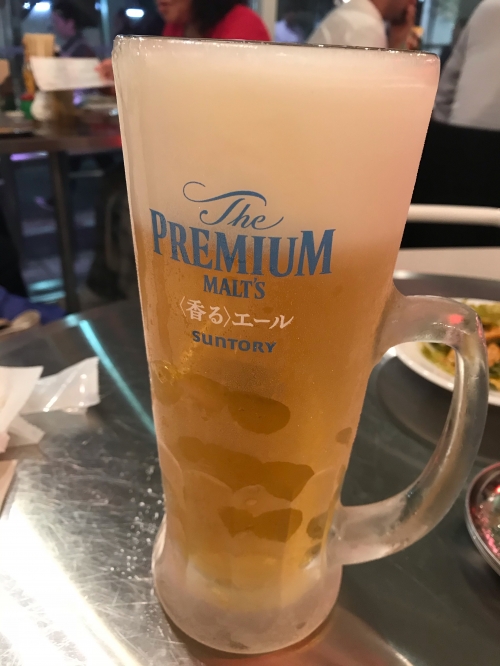 日本のビールは、瓶(¥650)と生があります。冷えたグラスに入った生(大¥800,中¥500)は見た目も美味しそう。ハイボールでは珍しいテキーラ、ダークラム、バーボン、ウイスキー(各¥480)から選べるんです。