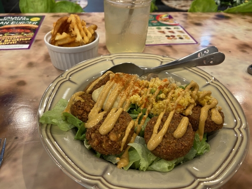 中東ではファーストフードとして食べられている、ひよこ豆やそら豆を原料に使ったファラフェルメニューがたくさんあります。メインディッシュは、