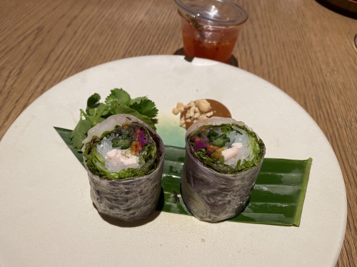 - 蟹と雲丹の生春巻き、選べる3種点心、トムヤムクン、メイン、ドリンク、デザートが付いたダダイ・コース(¥2,500)
