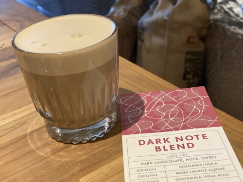 コーヒーをオーダーすると、産地、配合が書いてあるDARK NOTE BLENDの用紙が一緒に出てくるのも嬉しいサービスです。また夜はコーヒーを使ったカクテルも飲める、珍しいお店でもあります。