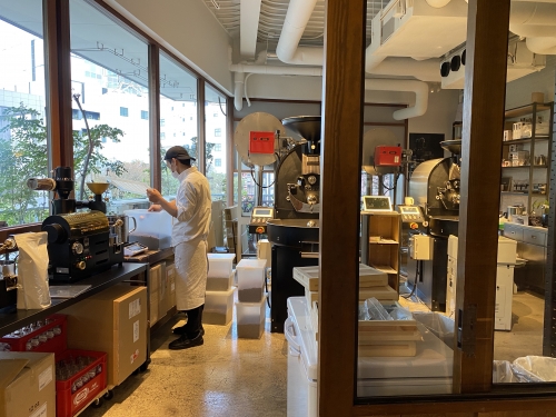 渋谷駅から数分の所にある美味しくて、安全をモットーにしているお店。店内の奥にはロースタールームがあり、オープンになっているので、コーヒーを焙煎する全ての工程を見学できます。メニューには、本日のホット、アイスコーヒー、エスプレッソに使われている豆の配合、焙煎方法、味などが記載されているので、一目で好みのコーヒーが選べるんです。