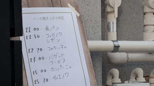 2021年4月にオープンしたばかりで、すでに人気店となっているパンとケーキの店「ホルン」。筆者はたまたま前を通りかかったのですが、行列ができており吸い寄せられるように行列に並んでしまいました。パンは焼き上がり時間が店頭に表示されており、それを見てから買いにくる方も多いようです。