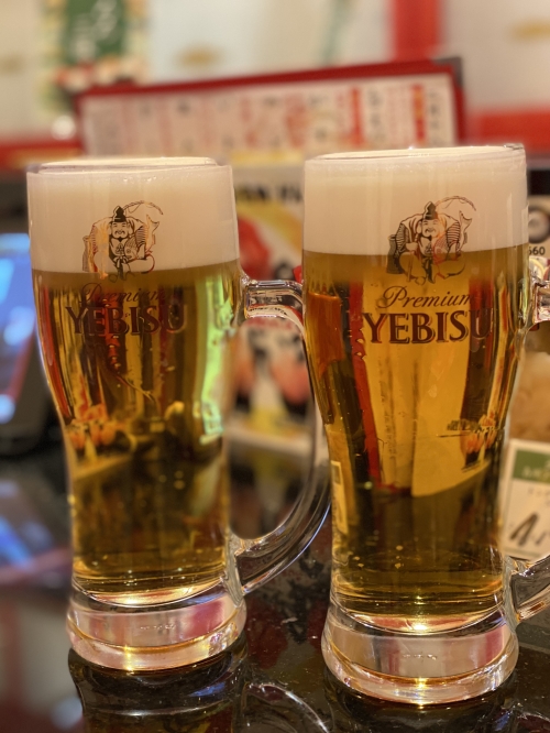 希少部位を使ったあおりいかの天ぷらは、サクサクの衣がいかの甘みを包み込んだ一品。飲み物は、エビスビール生(¥590)や北陸の地酒(¥660~)がおすすめです。