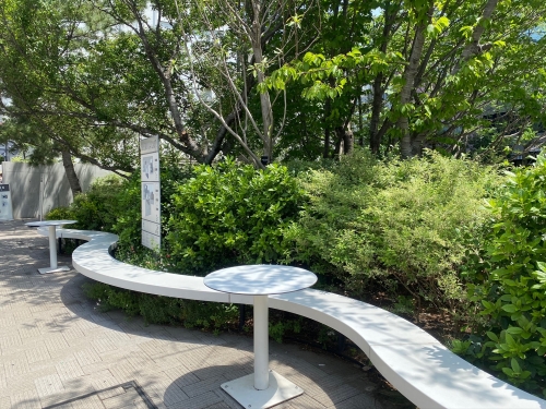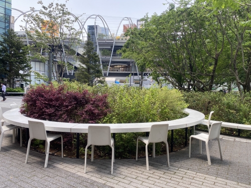 渋谷駅近くには、無料で休憩出来る素敵なベンチが沢山あるんです。SHIBUYA CAST前の広場は、緑が多くて、なおかつ密が避けられます。また、渋谷ストリーム近くの渋谷川沿いにある「渋谷リバーストリート」は、区民や近くで働く人の憩いの場所にもなっています。テイクアウトのお弁当を食べるのにもおすすめ。