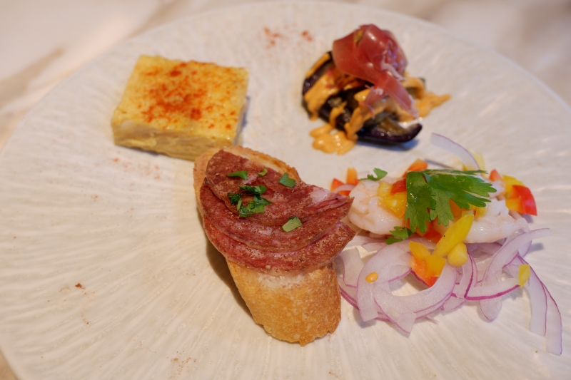 ランチ(税込1,870円~)では、前菜とメイン、デザート、ドリンクがセット。前菜では、スペインを代表する「スペイン・オムレツ」をはじめ、マリネやピンチョスなどを味わえます。