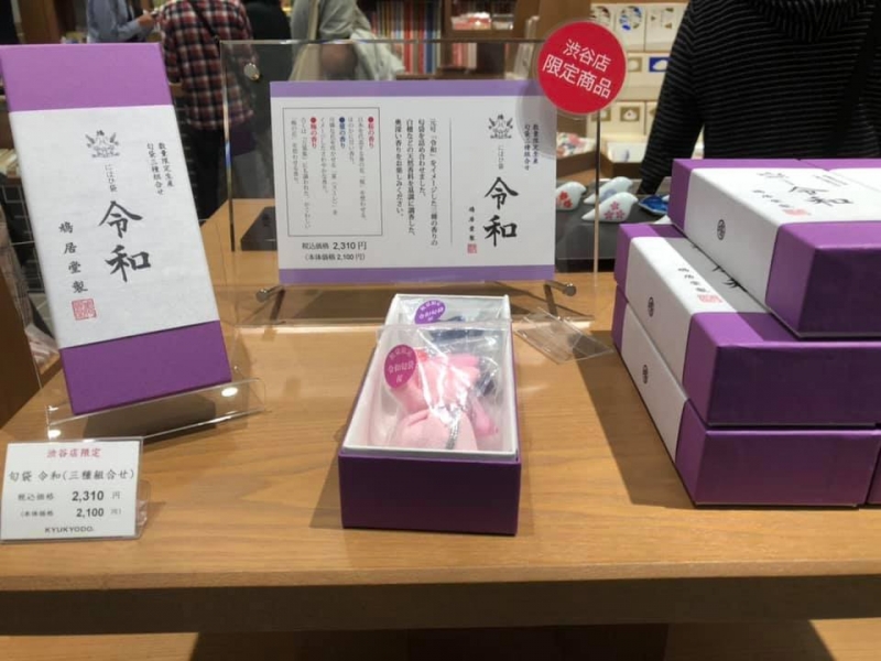 桜やスミレ、梅の3つの香りが楽しめる匂袋「令和」は、渋谷店限定の一品。「平成」に次ぐ元号「令和」をイメージした三種の香りを楽しめる一品で、見た目もかわいく、大切な人へのプレゼントにおすすめです。この他にも、表紙に檜を使った「御朱印帳」なども取り扱っています。
