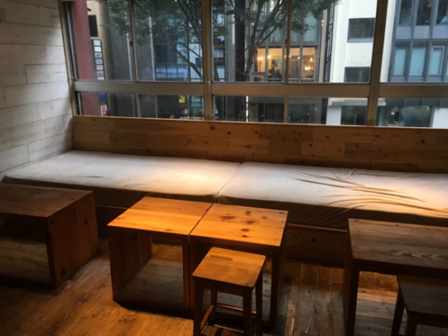 私がお邪魔したのはお昼の時間帯でしたが、デイタイム13時〜17時までの利用で、料金は1,500円(席料+フリードリンク※非会員の場合。会員の場合は1,000円)。フリードリンクが付いている上にソファー席も完備!他にはフード付きのコース(+500円)もありました。