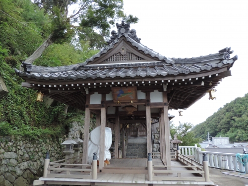 「都久夫須麻神社」での見どころは、国宝となっている本殿です。また竹生島一の絶景と言われる「竜神拝所」で、2枚のかわらけにそれぞれ名前と願い事(1枚に名前、2枚目に願い事)を書き、宮島鳥居へとかわらけを投げる「かわらけ投げ」(投げるとかわらけに書いた願いが成就すると言われています)など、願い事が叶うパワースポットとしても知られています。
