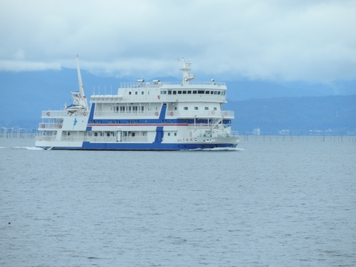 島には彦根港から観光船に乗ります。午前と午後2つのコースがあり、午前中の便は「多景島回遊コース」で、約45分(乗船料:1,000円)で彦根港を出港して多景島の周りを周遊できます。