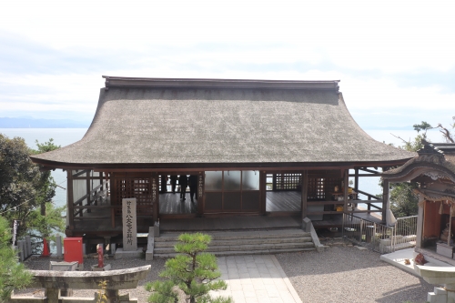 まずは165段の階段を登り宝厳寺の境内へ。宝厳寺は724年、聖武天皇が夢枕に立った天照大神から、弁財天の聖地であるこの島に寺を建立するようお告げを受け、行基を遣わし建立しました。行基は弁財天像を彫り本尊とし、翌年には観音堂を建立し千手観音を安置しました。以後、天皇の行幸が続き、弘法大使もこの地で修業したと伝えられています。