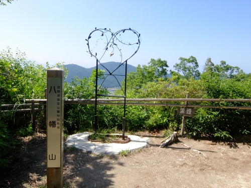 写真:トラベルライター滋賀県の八幡山頂上に位置する八幡山城。現在は、石垣などの遺構を残すのみですが、山頂からは琵琶湖や近江平野の美しい景色を眺めることができます。また、ロマンチックなスポットとして「恋人の聖地サテライト」に選定されている場所でもあるんです。お城には珍しく、境内にはハートやLOVEのモチーフが!爽快な景色の中で、恋のパワースポット巡りしてみませんか?