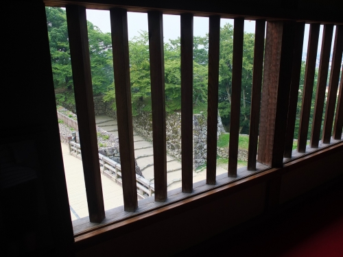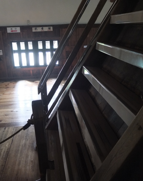 城内には、防戦のための鉄砲狭間や矢狭間が設けられていますが、外からはわからないよう漆喰が塗りこめられています。また城内に侵入した敵を上から突き落せるように階段は62度という急傾斜。上り下りの際はお気を付けください。他にも、破風を使った隠し部屋があったり、様々な展示品も興味深いものが揃っています。
